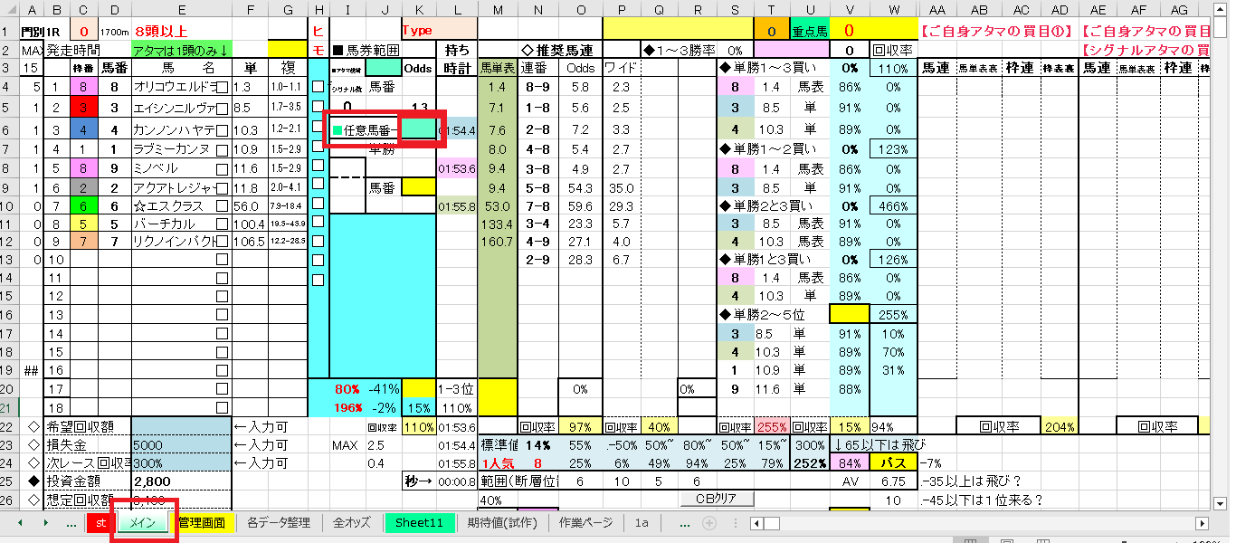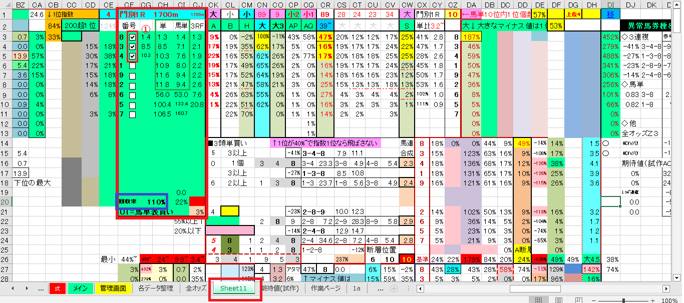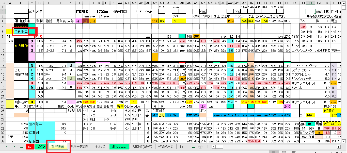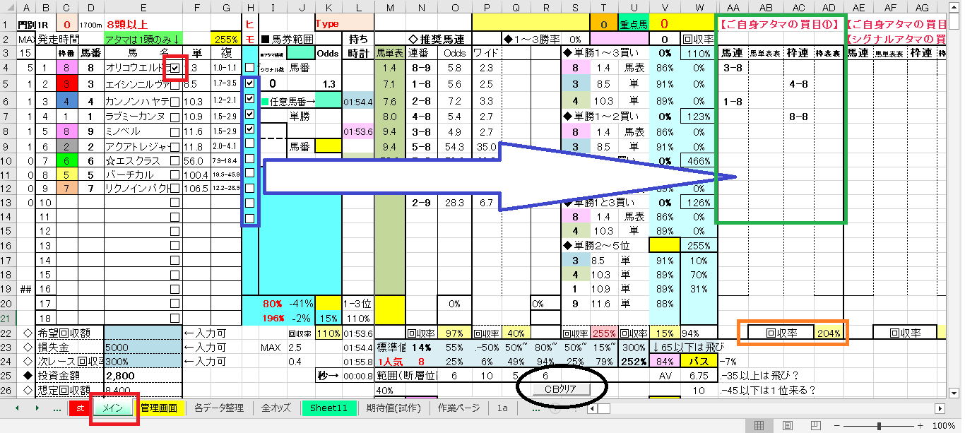 私の場合、レースごとに”各データ整理タブ”をコピーし、