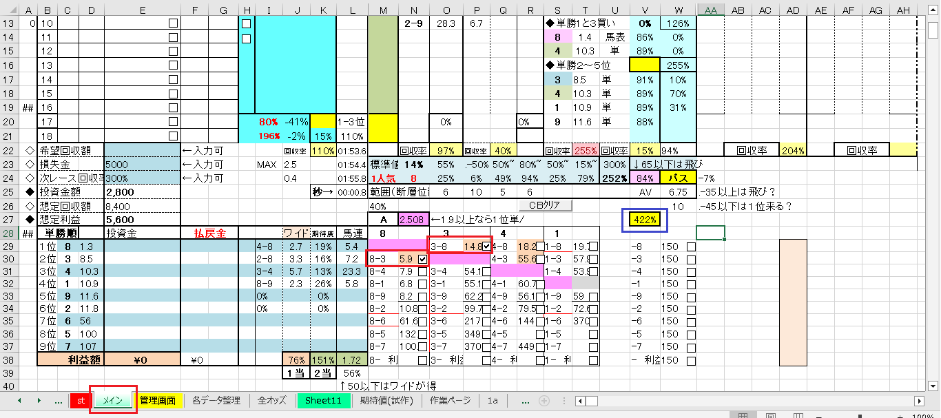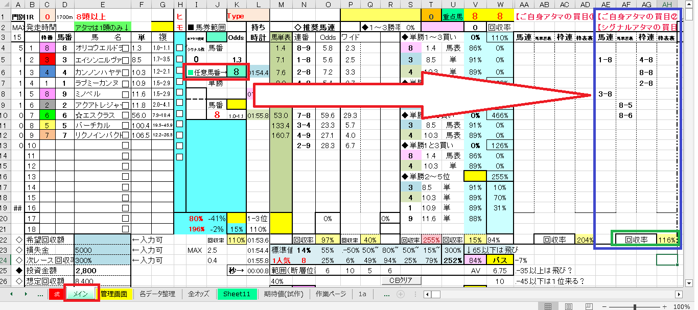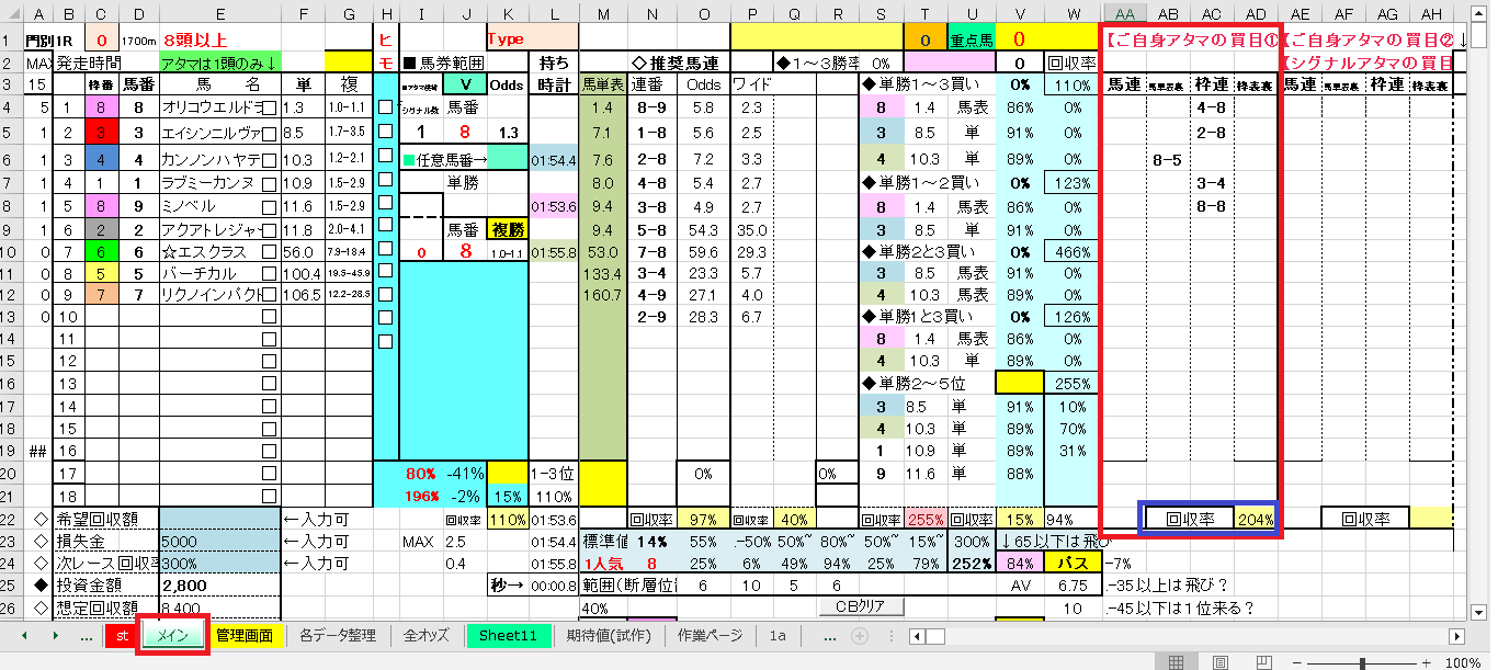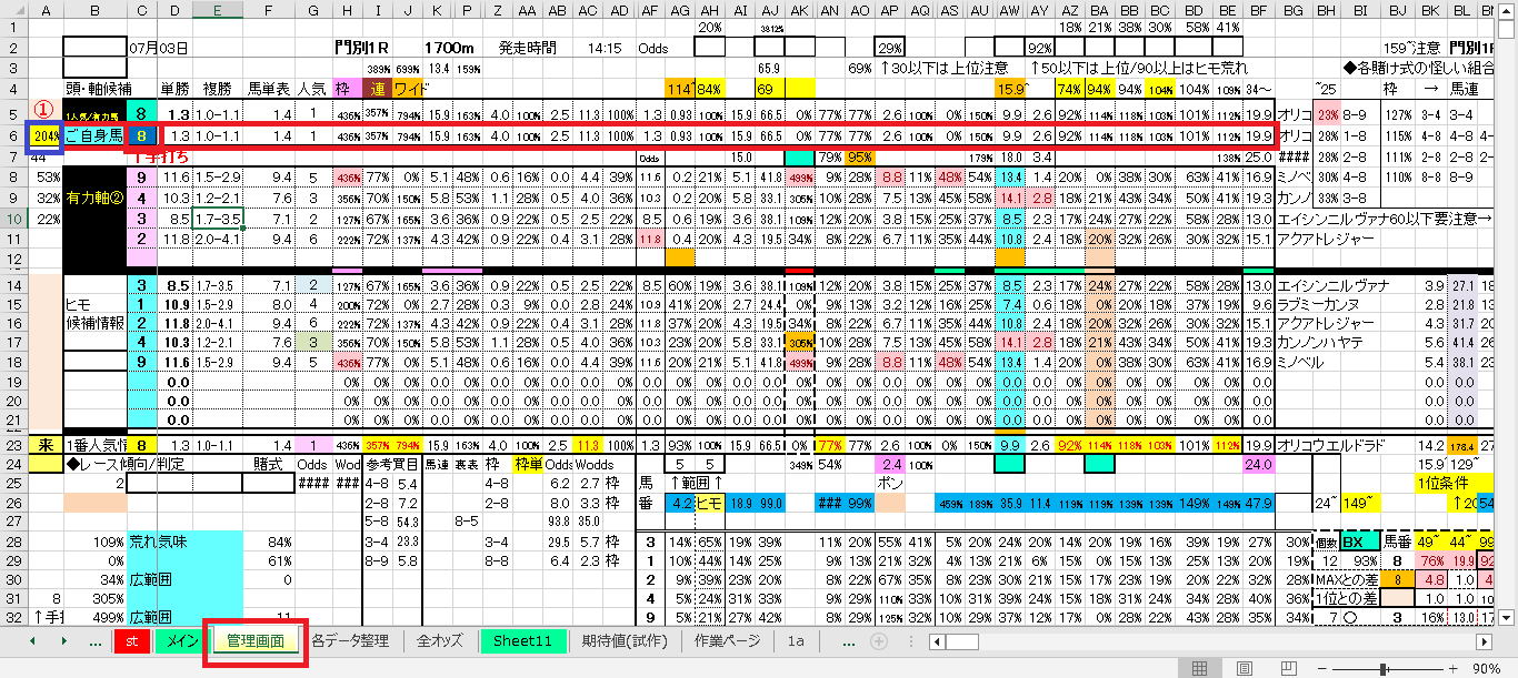 私の場合、レースごとに”各データ整理タブ”をコピーし、