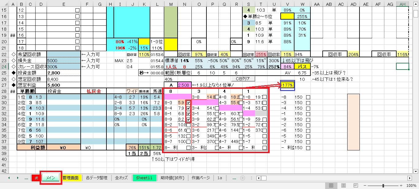 下図は・単勝/馬単・Vレースなので、